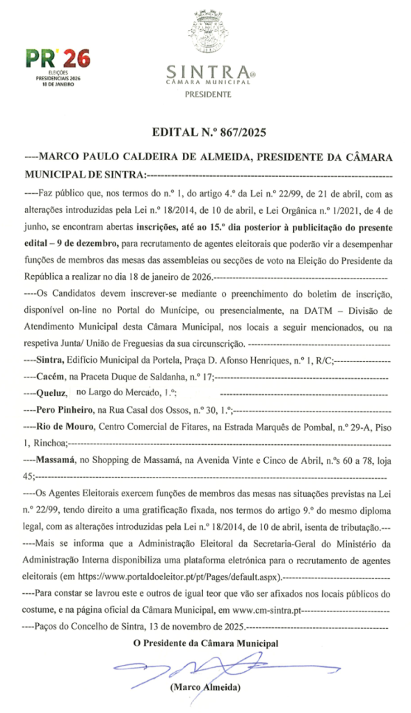 Eleições Presidenciais 2026 | Abertura de Inscrições para a Bolsa de Agentes Eleitorais