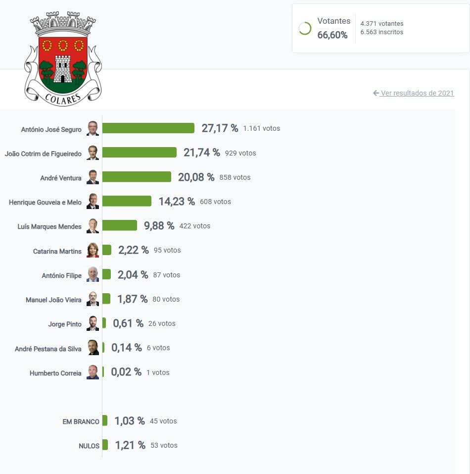 Eleições Presidenciais 2026 | Resultados da Freguesia de Colares